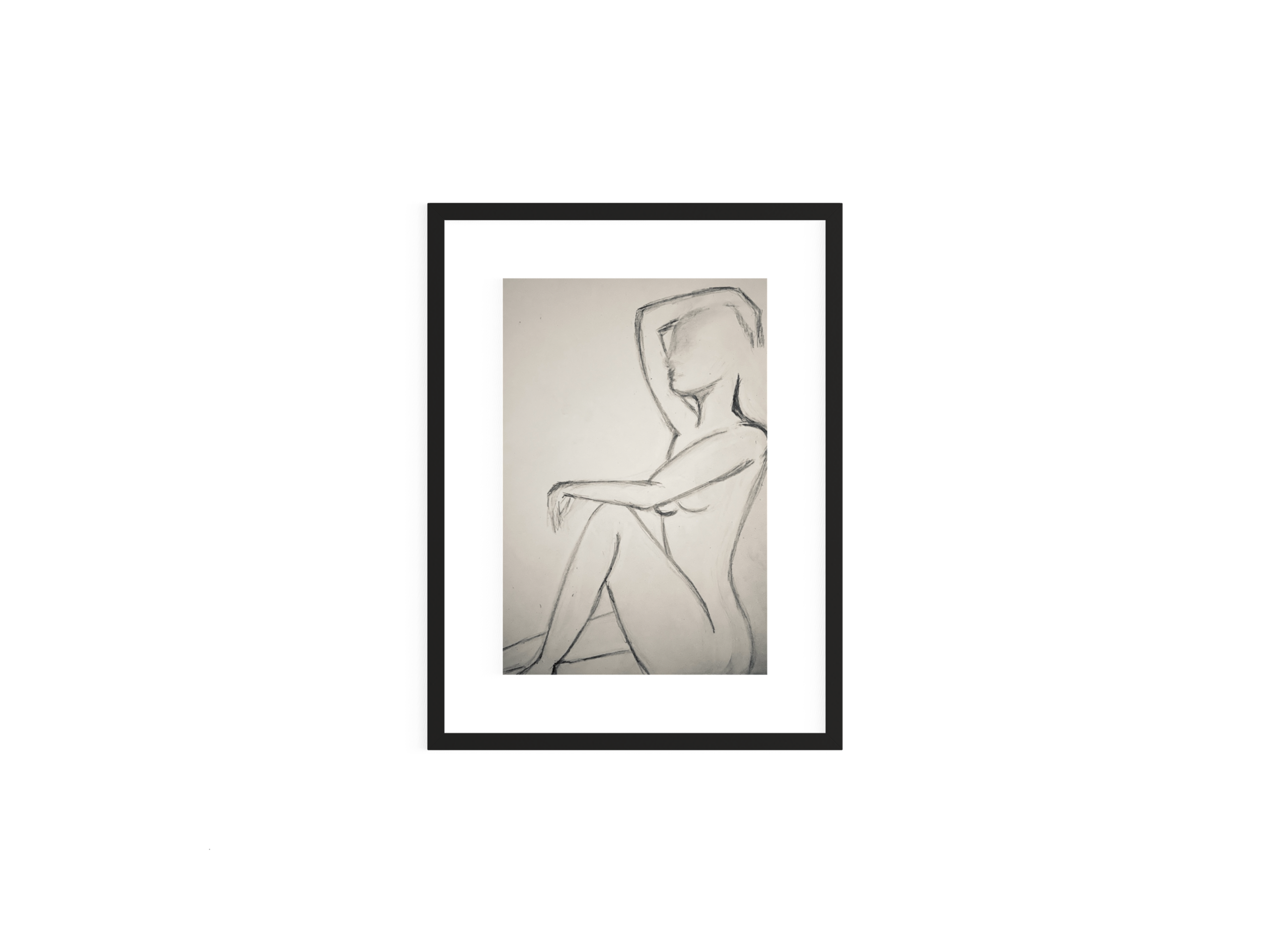 Gearbeitet mit Bleistift und Kohle auf Papier. Leichte Linien bestimmen die Form, Verdichtungen setzen gezielte Akzente. Flächen bleiben offen, Übergänge weich. Die Zeichnung lebt von Reduktion und Bewegung -weniger von Masse als von Linie.