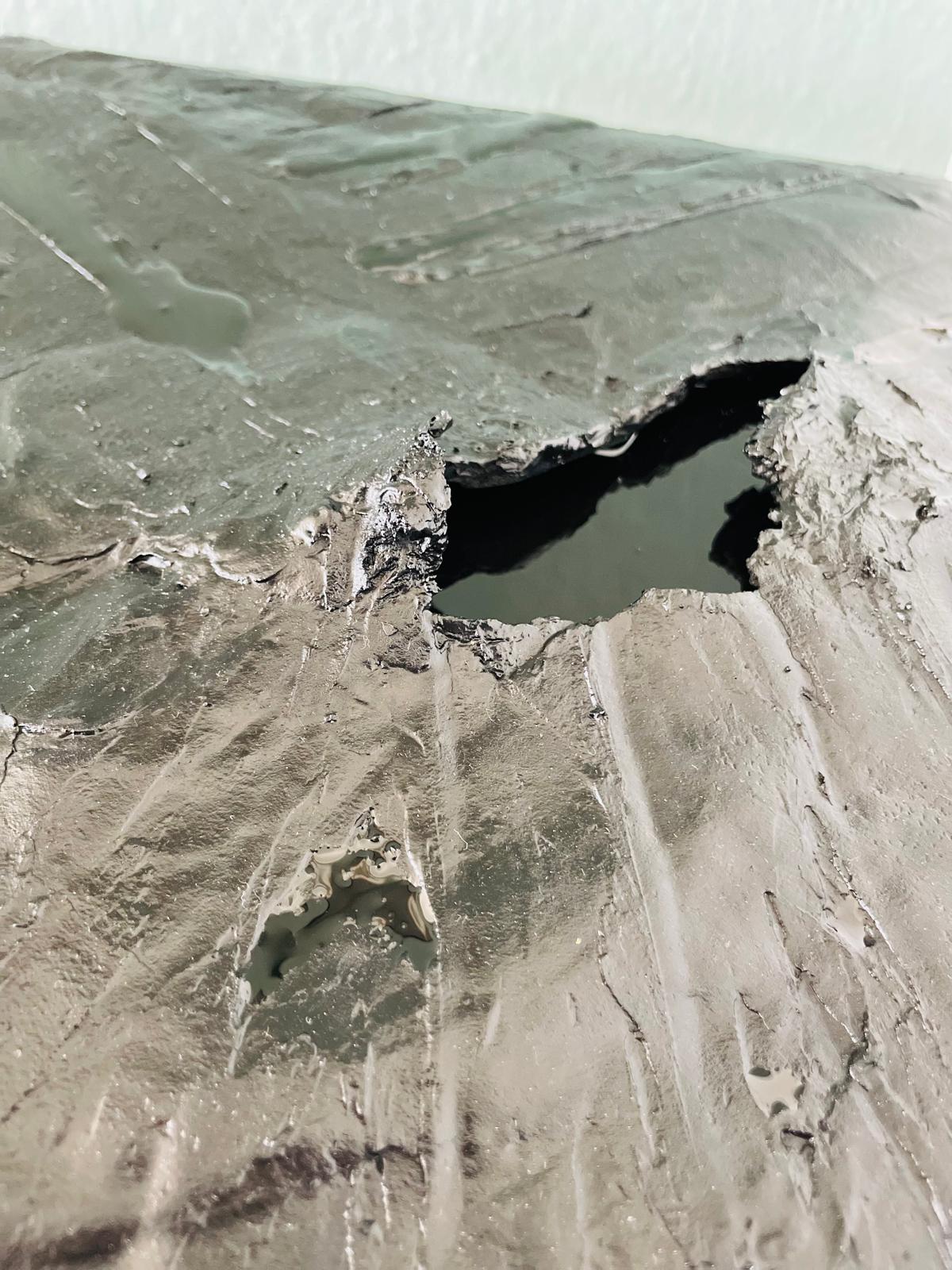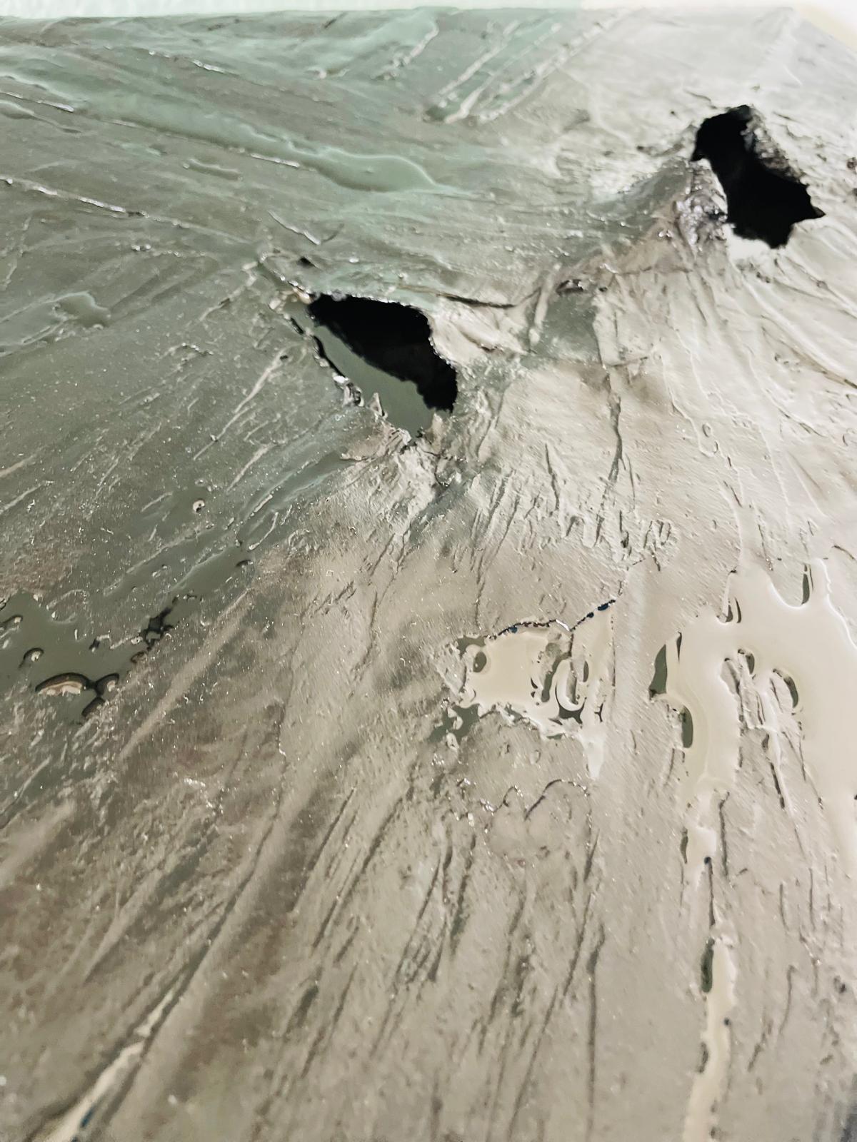 Dabei entstehen Strukturen, Risse und Übergänge, die den Arbeiten ihre Tiefe geben. Dieser Prozess ist ein Dialog zwischen Intuition und Material. Oft zeigt sich erst im Verlauf der Arbeit, welche Richtung ein Werk tatsächlich nimmt.