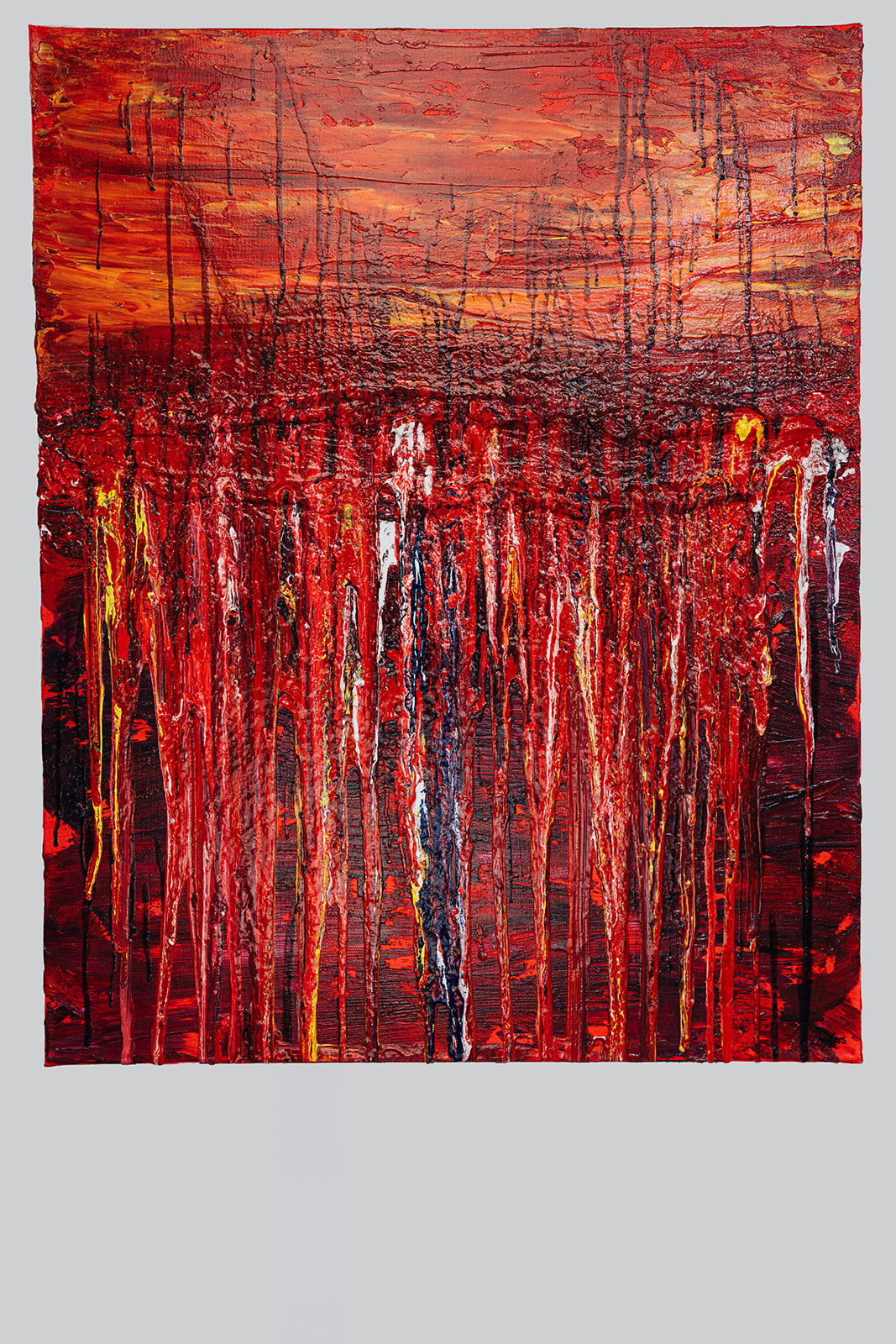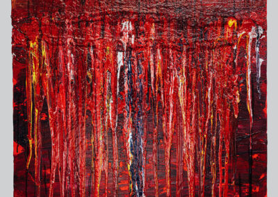 Technik/ Medium: Acryl auf Leinwand, u.a. Pouring- und Spachteltechnik mit starken strukturierenden Schichtungen