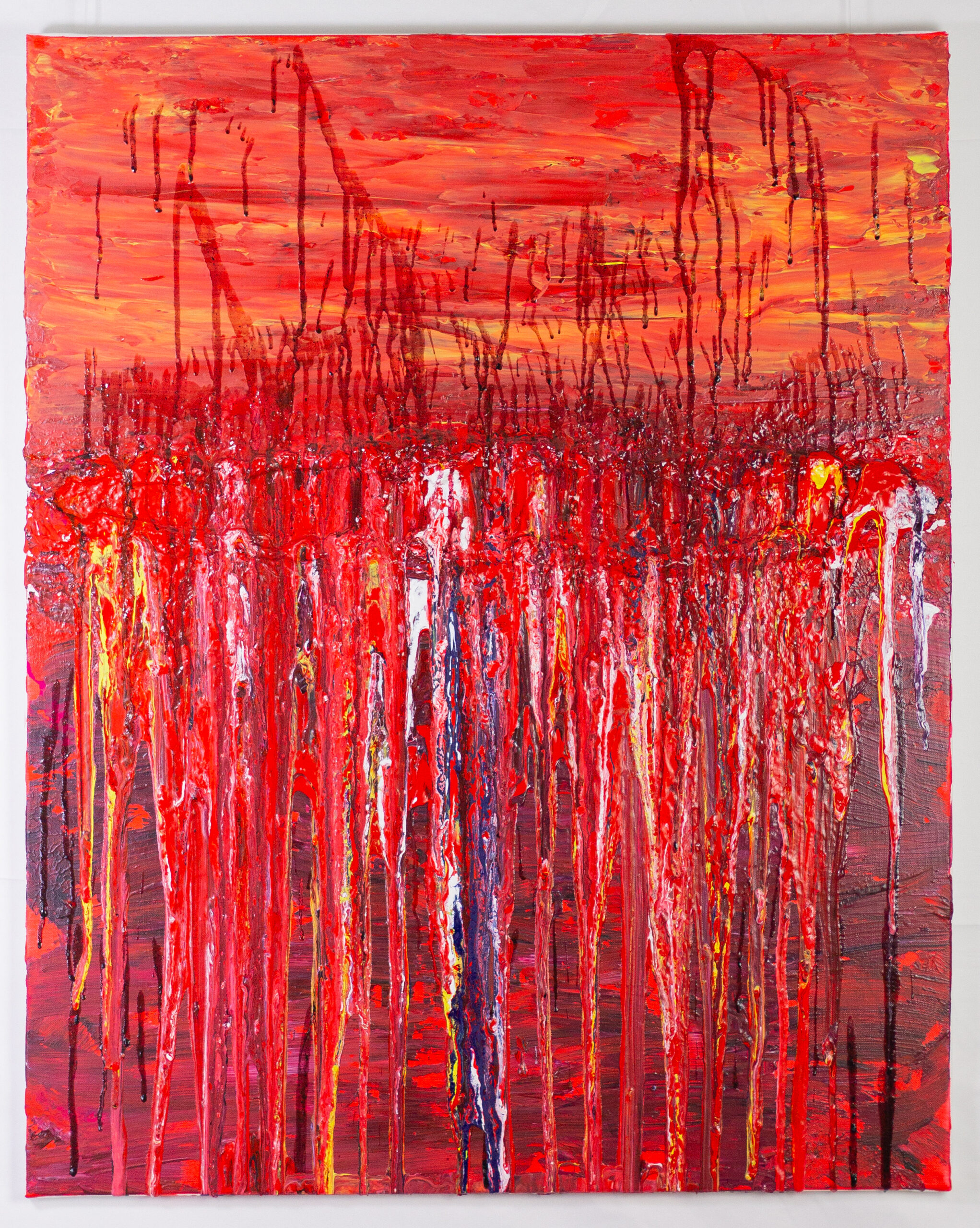 Farbe löst sich. Strukturen verlieren ihre Form. Schichten beginnen zu fließen.